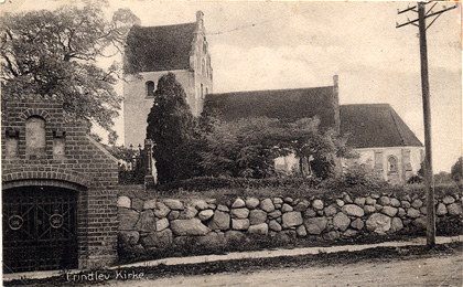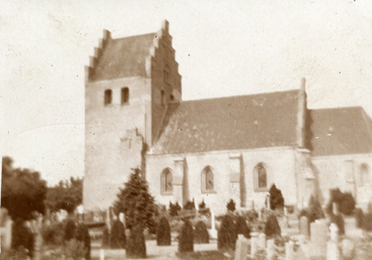 Kirken som postkort. Baroniets gravhøj Ved kirkegårdens sydlige indgang lå tidligere en "gravhøj" hvor Lungholm gravsatte deres døde, også kalde åben begravelse. Den er siden blevet fjernet, men helt oprindeligt (før 1870'erne) blev baroniets folk gravsat i tårnrummet i kirken. På nedenstående postkort ses indgangen til gravhøjen til venstre.