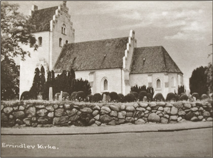 I sine 'Minder fra Errindlevs opblomstring' skriver L. Hansen: "Efter C.C. Haugners beskrivelse af Errindlev og Olstrup kan man se hvornår de første præster er kaldede. Efter disse må Errindlev kirke være opført i året 1188, man kan nemlig følge præsteindsættelserne lige fra den tid og ned til 1858, da provst Blume blev kaldet og virkede til 1876".