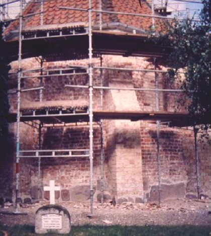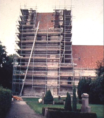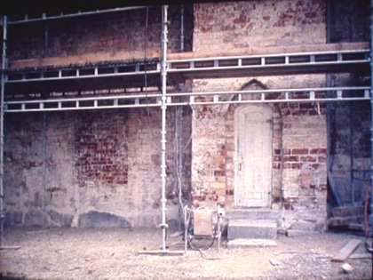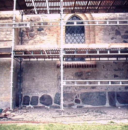 På mange af billederne ses forskellen i stenene tydeligt, samt tilmuringer af tidligere døre og vinduer.